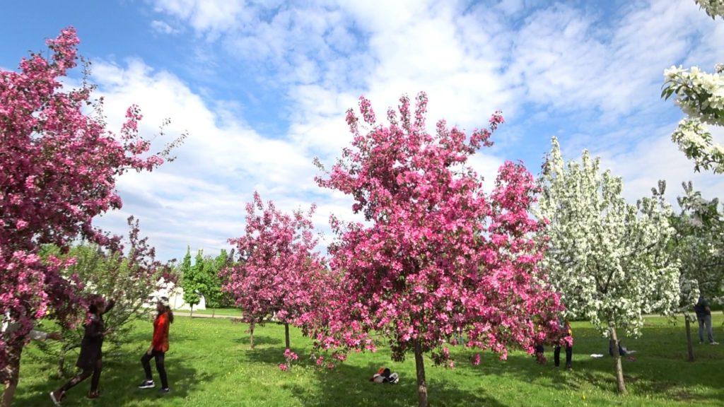Очень обильное цветение дерева приходится на последние дни мая. Сразу вслед за этим начинается образование завязей, которые в конце лета украшают яблони темно-красными мелкими яблочками, к сожалению, почти несъедобными.