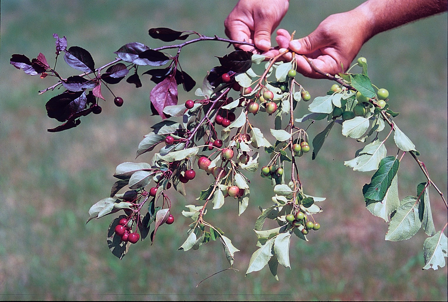 Вредители делятся на следующие группы: листогрызущие насекомые, сосущие, галлообразователи, минеры, ксилофаги или стволовые вредители и вредители плодов. Самыми распространенными вредителями плодов яблони являются яблоневая плодожорка и яблоневый пилильщик. Плодожорка за сезон дает три поколения. Ее гусеницы способны нанести вред всем плодам яблони. Зимой яблоня лесная может прятать плодожорку под своей корой.