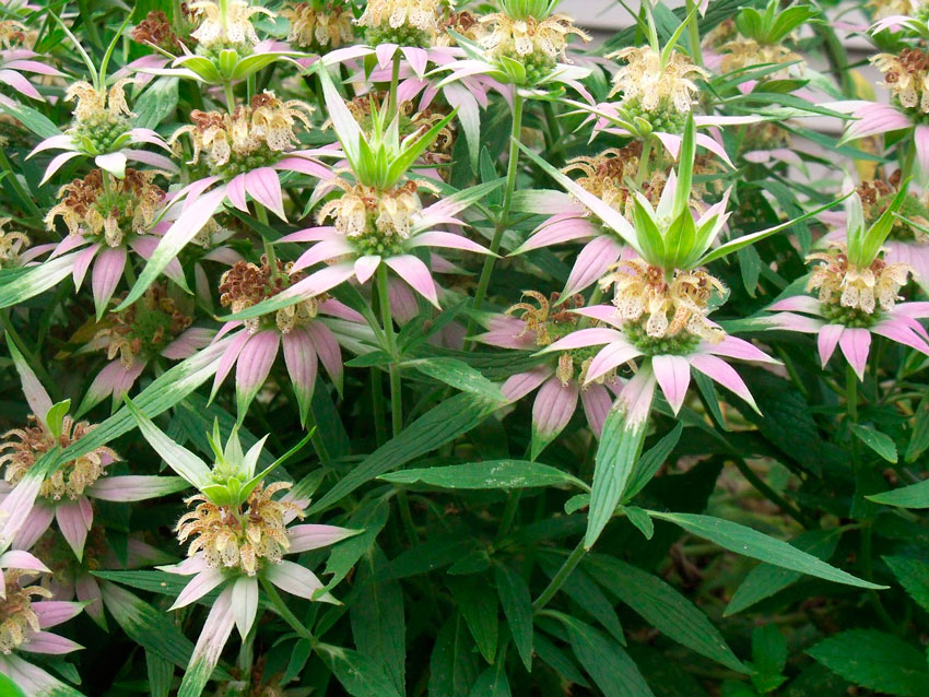 Семейство, к которому растение принадлежит, именуется губоцветным. Монарда отличается крайней неприхотливостью, во взрослом возрасте становится очень пышной. Примерно через пять лет после посадки куст одновременно цветет более чем сотней бутончиков.
