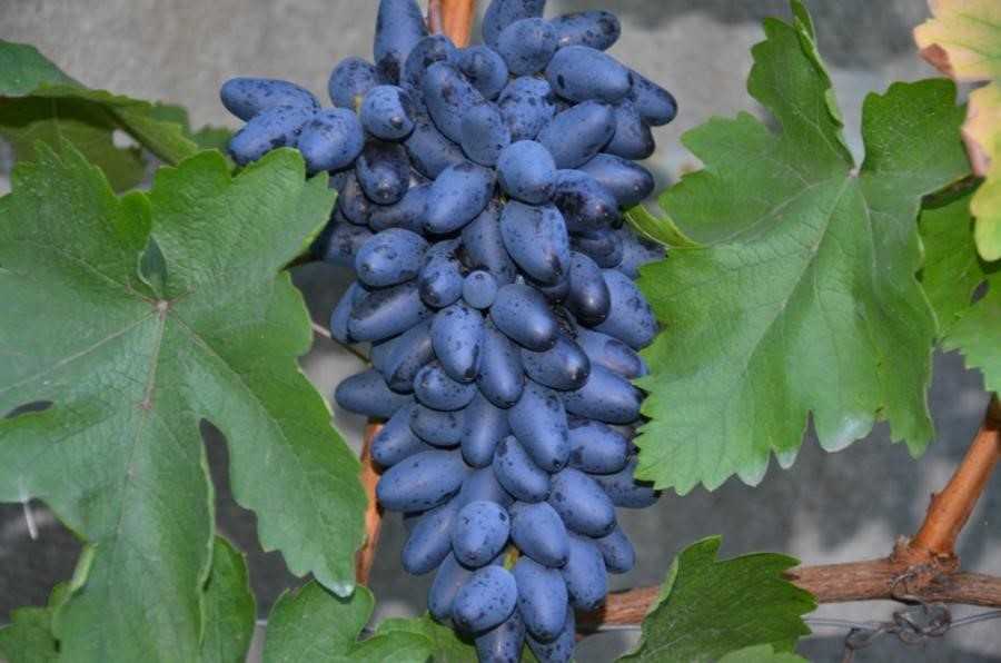 Это позднеспелый сорт, созревание происходит за 150-155 дней. Черный палец выведен израильскими селекционерами. Относится к бессемянной группе, так называемые киш-миши, но ягоды при этом огромного размера (до 3 см в длину и весом 10-15 грамм). Гроздья тоже очень большие, от одного до двух килограмм. Ягоды характеризуются большим содержанием сахара, при этом благодаря плотной кожице, выдерживают длительную транспортировку. Вкус хороший с мускатными нотками. Урожайность сорта очень высокая. Среди недостатков можно назвать средне-слабую устойчивость к болезням и довольно низкую морозостойкость – до -20°С.
